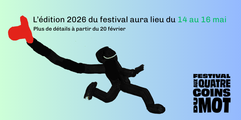 Chaque week-end de l’Ascension, AUX QUATRE COINS DU MOT célèbre le mot, sous toutes ses formes avec un programme généreux de spectacles, concerts, rencontres, expositions et animations.